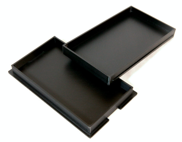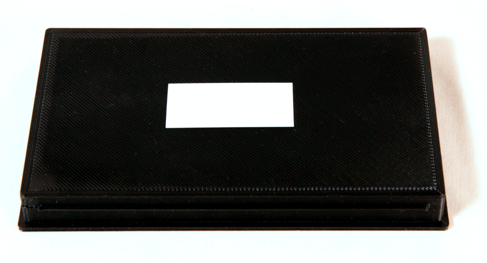 This box is designed to hold 6x12 cut strips of either 65mm or 70mm film. It snaps closed tightly but is easy to open with bottom and side ridges. It is completely light tight, made out of nearly unbreakable plastic. This holds film cut in the dark using our 65mm or 70mm Cut Film Guide. A pencil-erasable memo area on the front of the box allows you to easily label the contents.