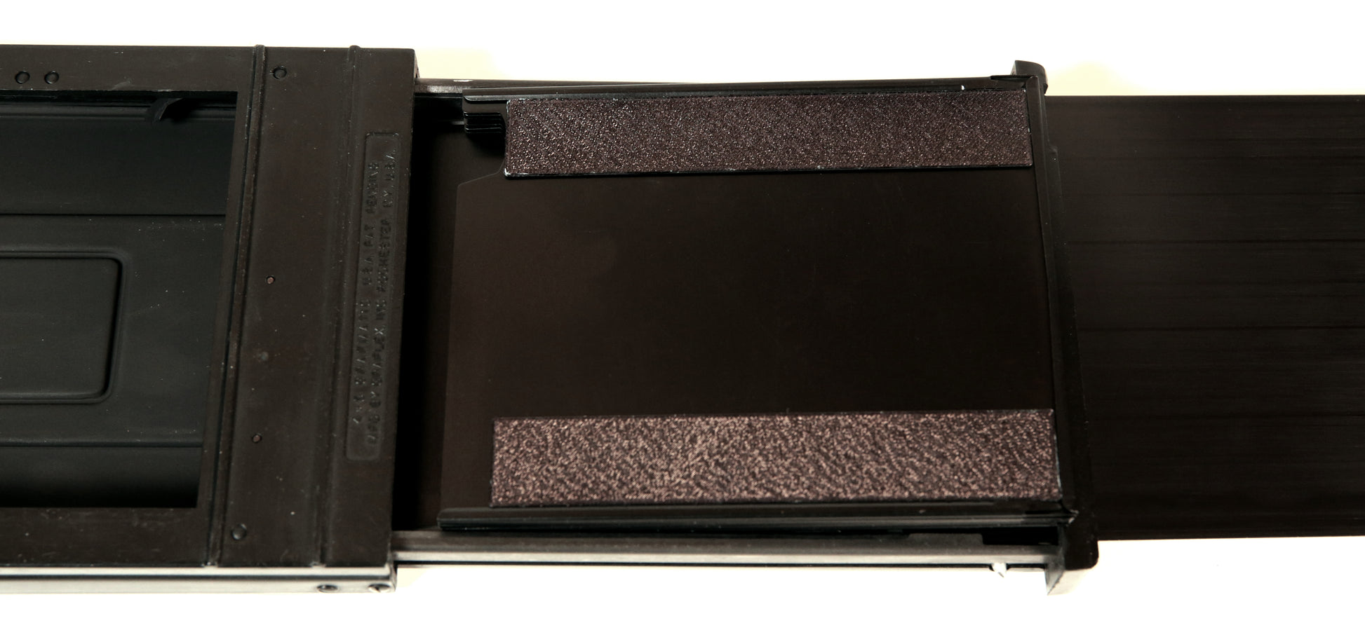 These are single Grafmatic 45 septums, modified by Mercury Works to accept either 65mm or 70mm film in 6x12 panoramic format.