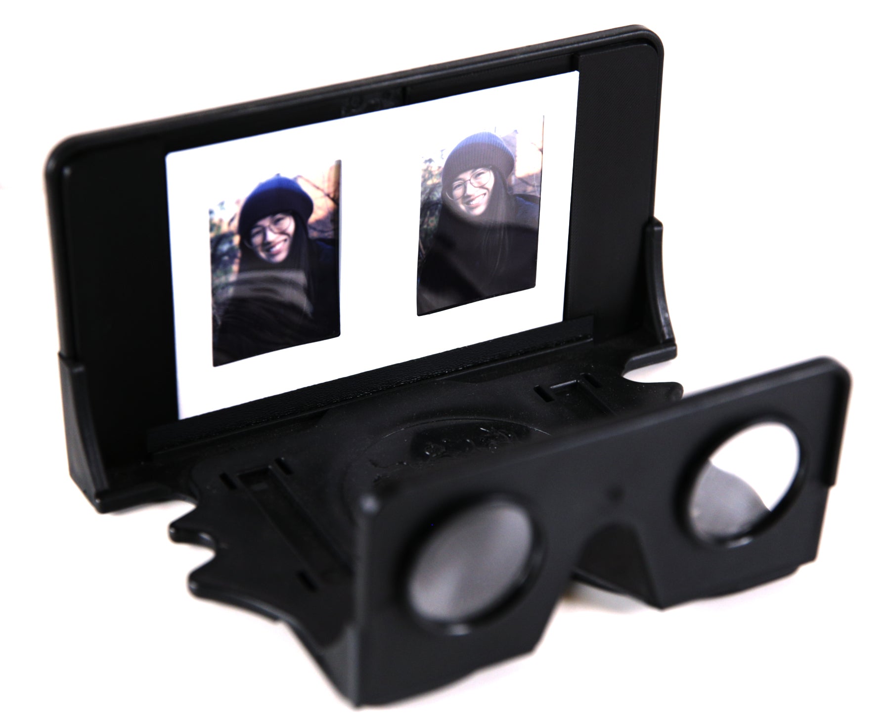 The final, mounted prints can be viewed with an Owl Lite viewer, but the Instax 3D Stereo Card Viewer Adapter enables your Instax 3D shots to be viewed in any modern stereo card viewer (such as the full-sized Owl) or any vintage one.