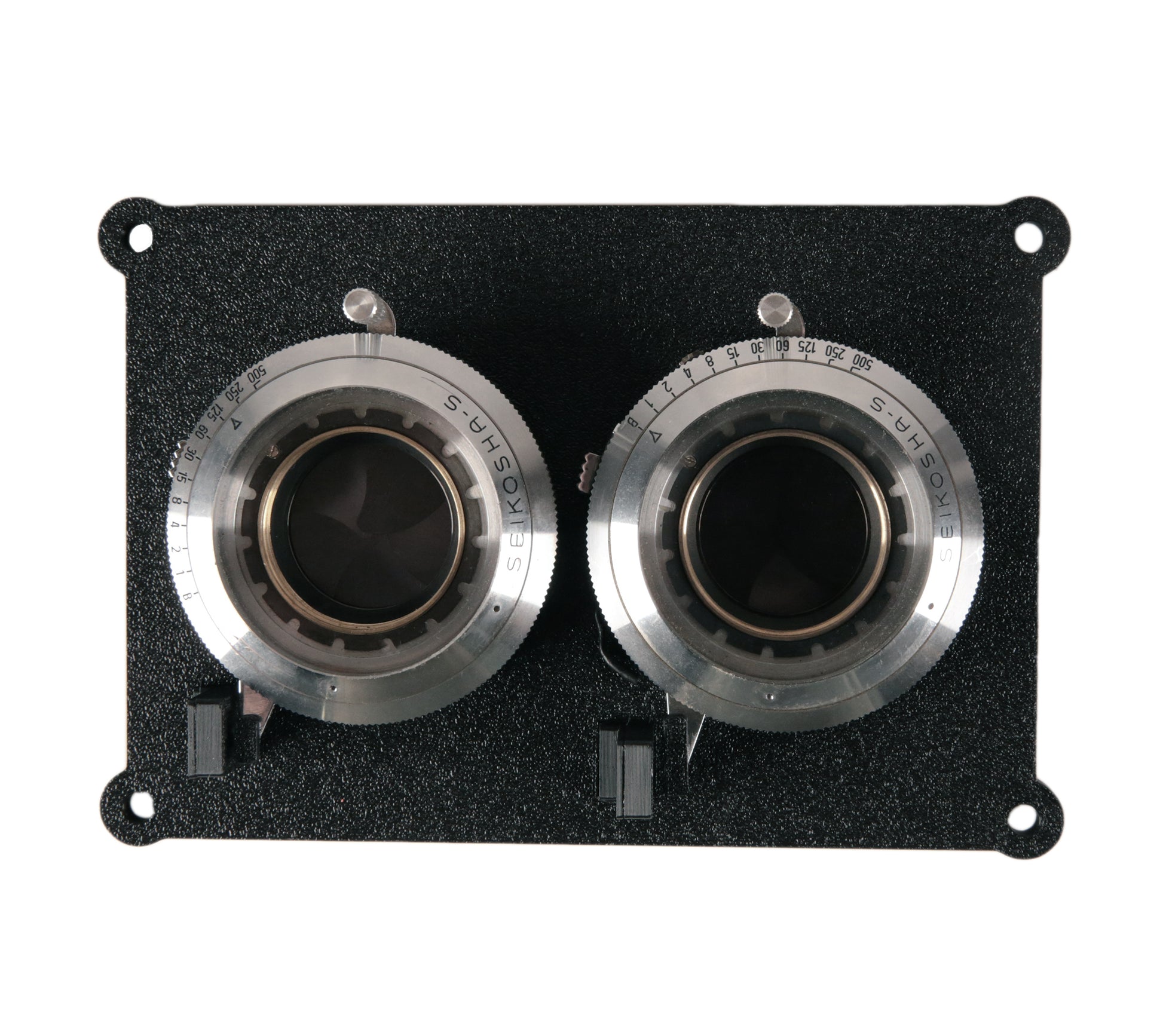 Generic 0: This standard lensboard mounts two Copal 0, Compur 0, or Seiko 0 shutters, and their accompanying lenses. As long as their shutters are size 0, and they contain shutter release ports, they are compatible with this board.