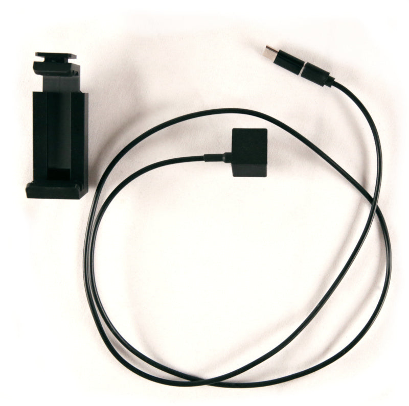 It comes with a simple, universal phone mount that mounts to either the top cold shoe rack or the left side cold shoe of your Mercury camera. Switch it to either position, on the fly, depending on whether you prefer to use your camera at waist level or directly in front of you. You can also leave your phone unmounted from the camera in order to use it as a handheld, portable monitor in any position--especially helpful if your camera is placed in a difficult position, such as on the ground facing upward, against a wall, etc.