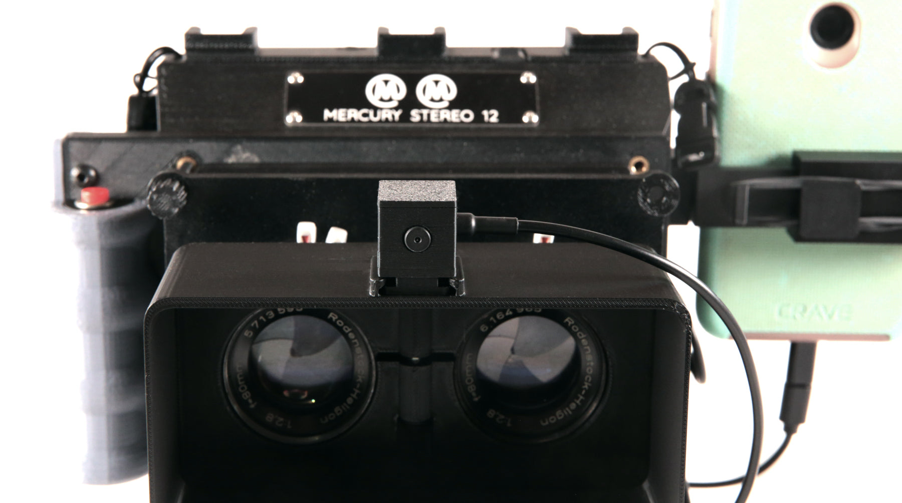 The Mercury Videofinder is a tiny, cold-shoe-mountable video camera that plugs into a mobile phone to display your image. Designed for the Mercury Stereo Hood Finder system, it can mount on any Mercury Stereo hood (for minimum vertical paralax) or on any cold shoe.